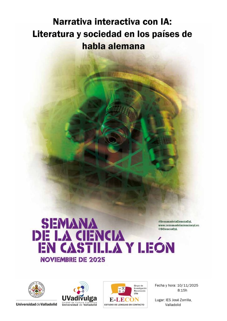 Participación del GIR E-LECON en la Semana de la Ciencia de Castilla y León 2025 con la intervención “Narrativa interactiva con IA: Literatura y sociedad en los países de habla alemana”